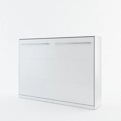 A two-sleeper horizontal wall bed with a locking system, a mid-air self-holding feature and spring...