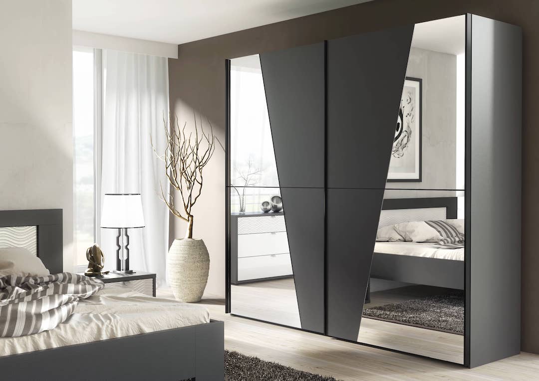 The DT-01 wardrobe has three sliding doors, one mirrored, to create the illusion of an...